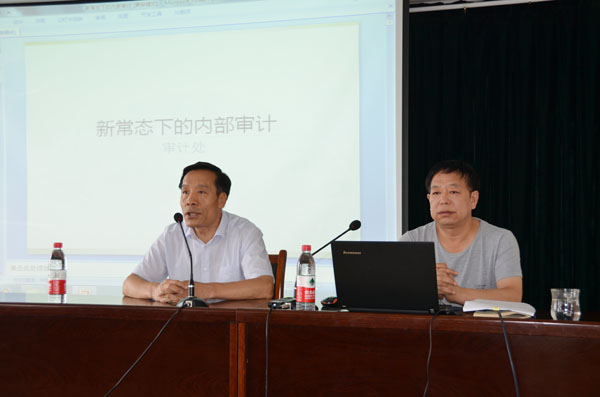 审计处负责同志从三个方面对新常态下的审计工作作了重点解读。一是学校审计规章制度修订的背景。十八大以来内部审计地位、严峻的反腐形势、国家政策要求、内部审计理念和审计工作实际都出现了新的变化,客观上要求学校审计工作必须适应审计新常态。内部审计作为审计监督体系的重要组成部分,通过关注国家政策在本单位的贯彻落实, 监督国家的法规制度、财经纪律的贯彻执行,促进本单位管理的规范。二是新制度修订的依据及所把握的原则。学校本次规章制度修订主要依据是国家上位法和《八项规定》出台后国家、省出台的实施细则和意见,特别是2012年以来的重要政策法规。本次规章制度修订坚持了政策性、现实性、简洁性和系统性4个基本原则。三是7个文件的主要内容、基本要求和操作规范。他结合社会、学校近年来在审计工作中存在的突出问题,采用事例分析法、对比法对新制度条款进行了科学剖析。