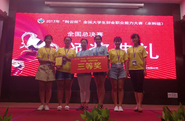 本网讯 7月9日,由中国商业会计学会主办的2017年“科云杯”全国大学生财会职业能力大赛全国总决赛,在集美大学财经学院(厦门)隆重举办。我校选手沉着应战,历经六个小时的激烈比拼,最终获得全国三等奖的优异成绩。