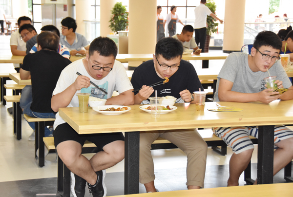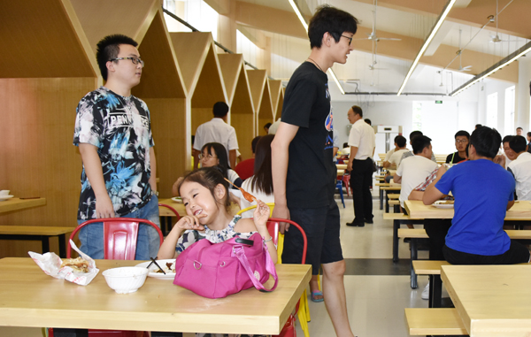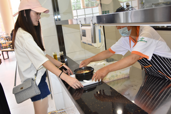 典礼结束后,王旭升一行走进焕然一新的“新一餐”和二餐三楼,听取了餐厅负责人的情况介绍,仔细查看学生就餐环境、饭菜加工以及安全设施等,并和就餐的学生亲切交流,询问他们饭菜价格,征求对餐厅工作的意见。王旭升要求餐厅一定要为我院学生提供安全、卫生、营养的饭菜,进一步加强细节管理。
