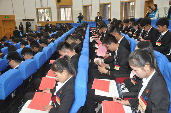 上午8时30分,我校团学“双代会”在庄严的国歌声中开幕。陈珊珊代表地方团组织讲话,她在讲话中充分肯定了我校近年来共青团工作取得的成绩,同时对新形势下学校共青团工作的发展提出了新的要求。